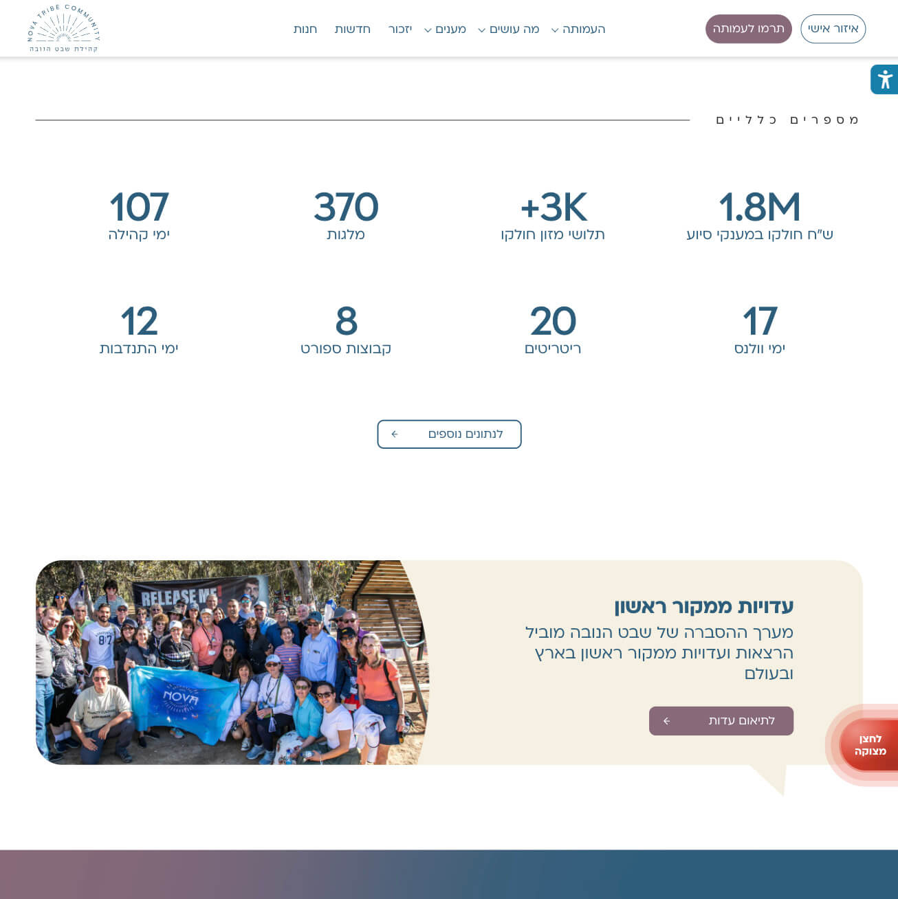 02.פיתוח האתר הרשמי של עמותת קהילת שבט הנובה - אתר תדמיתי רחב היקף על פי עיצוב, עם מבנה מורכב ומספר רב של Custom Post Types, המאפשר ניהול תוכן עשיר ומגוון. האתר מחובר למערכת ניהול תוכן מתקדמת ב־ACF, רחבת יכולות אך אינטואיטיבית, נוחה וקלה לשימוש.
