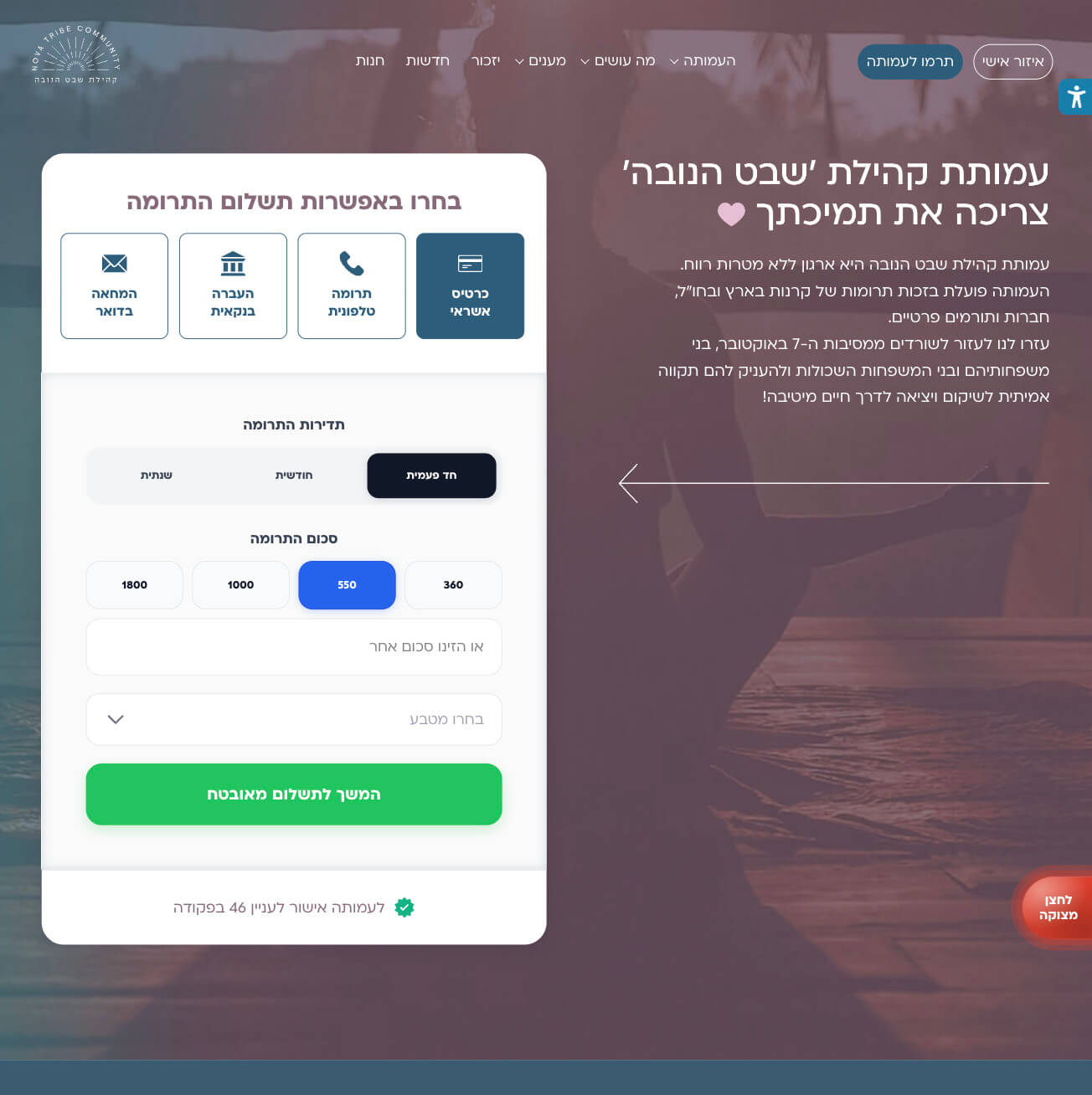 הפרויקט כולל תפריט דרופדאון אינטראקטיבי, אנימציות מרהיבות, לחצני מצוקה, אזור אישי עם התחברות מאובטחת באמצעות SMS או מייל, ומודול תרומות מתקדם מבוסס WooCommerce - כולל טפסי תרומה חכמים, הטמעת ספק סליקה ופונקציונליות מתקדמת. כל המערכת מותאמת רספונסיבית באופן מלא לכל גדלי המסכים, עם דגש על חוויית משתמש חלקה ועקבית.